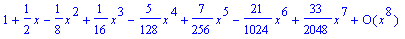 в ряд Маклорена:> p:=taylor(sqrt(1+x), x=0, 8 );
