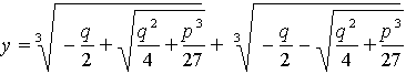 Последняя формула называется формулой Кардано для решения кубического уравнения, и полные сведения о этой формуле излагаются в учебниках по высшей алгебре. Все три корня кубического уравнения получаются следующим образом