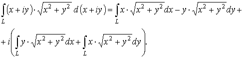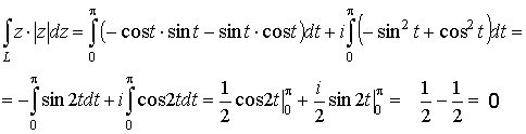 К ВЫБОРУ ВАРИАНТА К СОДЕРЖАНИЮ РАЗДЕЛА Вычислить интеграл от функции комплексного переменного по данной кривой L: {|z | = 1,Imz ≥ 0}. Решение. Построим линию интегрирования Перейдём к параметрическому заданию линии интегрирования: L: { x = cos t, y = sin t, 0 ≤ t ≤ π}. В этом случае