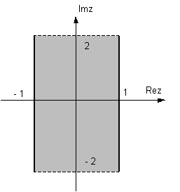 РЕШЕНИЕ. Так как по определению для комплексного числа z = x + iy, Re z = x, а Im z = y, неравенство | Re z | ≤ 1 равносильно неравенствам – 1 ≤ x ≤ 1, а неравенство | Im z | < 2 равносильно неравенствам - 2 < у < 2.