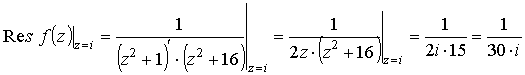 Вычислим вычет в точке z1 = i: