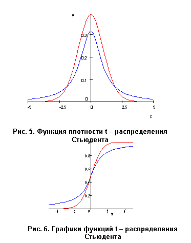 Заметим, что функция плотности t – распределения Стьюдента похожа схематично на график стандартной нормальной плотности, сравните рис. 5 и рис. 3. Следует отметить, что