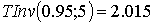 | Tdist(c; 5) - Tdist(- c; 5) = 0.9 | (5) |