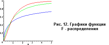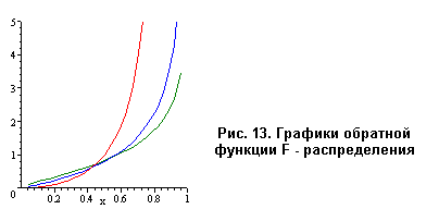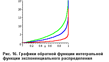 На рисунках 14, 15, 16 указаны графики функций (11), (12) и обратной функции экспоненциального распределения для параметром μ = 1, 3, 5 и 0 ≤ х ≤ 25