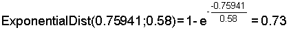 WeibullDist(0.51431;0.5,0.3) = 0.73; WeibullInv(0.73;0.5,0.3) = 0.51431;