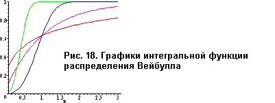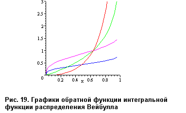 Графики функций (13), (14) и обратной функции интегральной функции распределения Вейбулла представлены на рис. 17, 18, 19