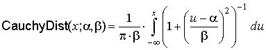 Интегральная функция распределения Каучи для действительных параметров α и действительных положительных