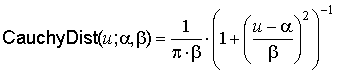 Средним этого распределения является параметр α, этот же параметр определяет максимум плотности. Интегральная функция распределения Каучи имеет обратную функцию CauchyInv(x; α, β).