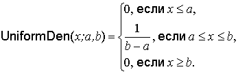 Функция плотности однородного распределения на интервале [a, b], где a < b, определяется соотношениями