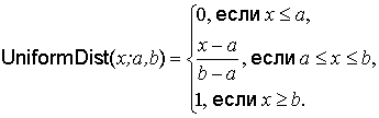Интегральная функция однородного распределения на интервале [a, b], где a < b, определяется соотношениями