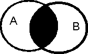 В алгебре множеств конъюнкции соответствует операция пересечения множеств, т.е. множеству получившемуся в результате умножения множеств А и В соответствует множество, состоящее из элементов, принадлежащих одновременно двум множествам.