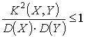 | r (X, Y) | ≤ 1. Доказательство. По свойству математического ожидания имеемM [( X - M( X )) + λ·M ( Y - M( Y ))]2 ≥ 0, что тождественно для любых значений параметра λ. Раскрывая это выражение, и пользуясь свойствами математического ожидания, получимM ( X - M( X ))2+2·λ·K( X, Y )+λ2·M ( Y - M( Y ))2 ≥ 0, что тождественно для любых значений параметра λ. Следовательно, дискриминант квадратичного трёхчлена правой части – неположительный:K2 ( X, Y ) - D ( X )·D ( Y ) ≤ 0. Откуда следует и, наконец,