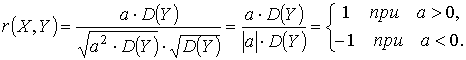 , то | r (X, Y) | = 1. При этом r ( X, Y ) = 1 при а > 0 и r ( X, Y ) = - 1 при а < 0. И обратно, если | r ( X, Y ) | = 1 , то X = a·Y + b.