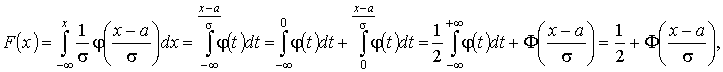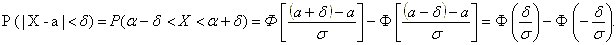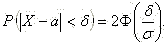 P(| X - a| < σ·t) = 2· Ф(t).