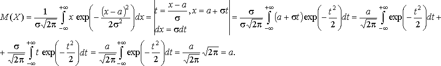 В выражениях плотности вероятности и функции распределения случайной величины, распределённой по нормальному закону, параметры а и s являются соответственно её математическим ожиданием и средним квадратическим отклонением.
