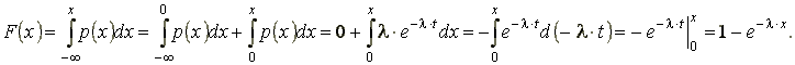 Функция распределения случайной величины, распределённой по показательному закону