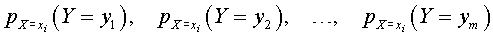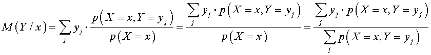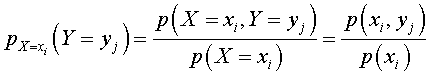 Условная вероятность события Y = yj, если наблюдалось событие X = xi, будет равна