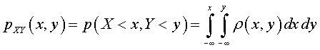В случае непрерывного распределения величин X и y их совместное распределение задается с помощью плотности вероятности ρ интегрируемой функции ρ(x, y).