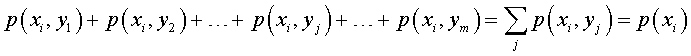 | yj | p (x1, yj) | p (x2, yj) | … | p (xi, yj) | … | p (xn, yj) | p (yj) |