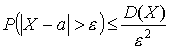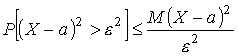 Доказательство. Пусть Х – данная случайная величина и а – её математическое ожидание. Тогда (Х – а)2 – случайная величина, которая не принимает отрицательных значений. Поэтому для оценки вероятности выполнения неравенства (Х – а)2 > ε 2 можно применить лемму Чебышева, считая в нём А = ε 2,