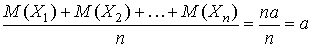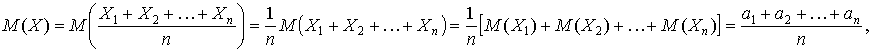 Действительно, средняя арифметическая математических ожиданий данных случайных величин: