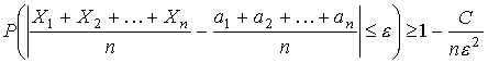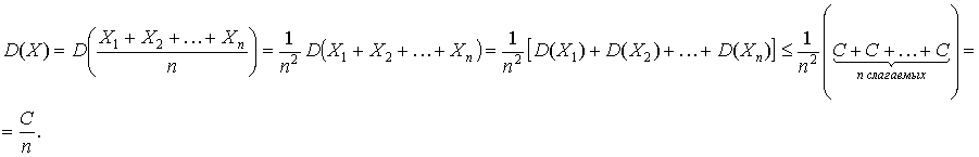 Доказательство. Применим неравенство Чебышева к случайной величине Х, являющейся средней арифметической случайных величин Х1, Х2, , Хn: