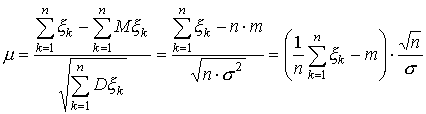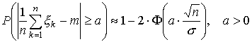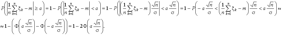 Если случайные величины имеют равные математические ожидания и дисперсии М( ξk ) = m и D( ξk ) = σ2, тогда при больших n имеем