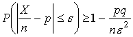 Доказательство. Частость события А рассматривается как средняя арифметическая случайных величин Х1, Х2, , Хn, выражающих число наступления события А в определённых испытаниях. Их математические ожидания равны р, дисперсии равны pq, а поэтому ограничены числом pq. Тогда, согласно следствию 1, имеем: