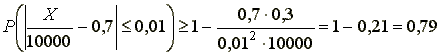 Решение. Частость события в n независимых испытаниях является случайной величиной. Математическое ожидание её равно вероятности р наступления события в каждом испытании, а дисперсия равна pq/n. Поэтому неравенство Чебышева для частости события имеет вид