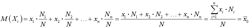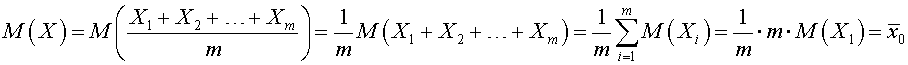 Выборочной средней Х повторной выборки назовём среднее арифметическое случайных величин