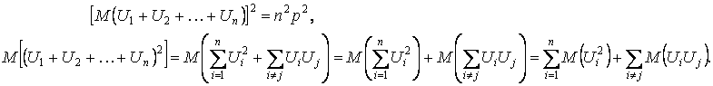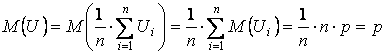 Действительно, так как M( U1 ) = M( U2 ) = … = M( Un ) = p, то по свойству математического ожидания получим