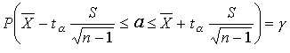 , имеющая распределение Стьюдента с числом степеней свободы (n – 1). Закон распределения случайной величины Т не зависит ни от математического ожидания, ни от дисперсии.Предполагается, что средняя арифметическая X и выборочное среднее квадратическое отклонение S определены по результатам выборки объёмом n из генеральной совокупности Х.