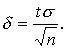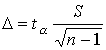 По таблице t распределения (Стьюдента) для α с n – 1 степеней свободы находим значение tα, ν, для которого справедливо неравенство