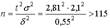 . По условию γ = 0,995; и следовательно, F(t) = 0,995/2 = 0,4975. По таблице приложения № 2 [2] найдём t = 2,81. Подставляя найденные значения в формулу, получим
