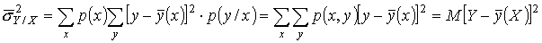взвешенным значением из условных дисперсий. Эта величина даёт представление о точности прогноза Y по X во всём диапазоне изменения Х. Она тем меньше, более точна и определяет зависимость от Х, чем ближе эта зависимость к