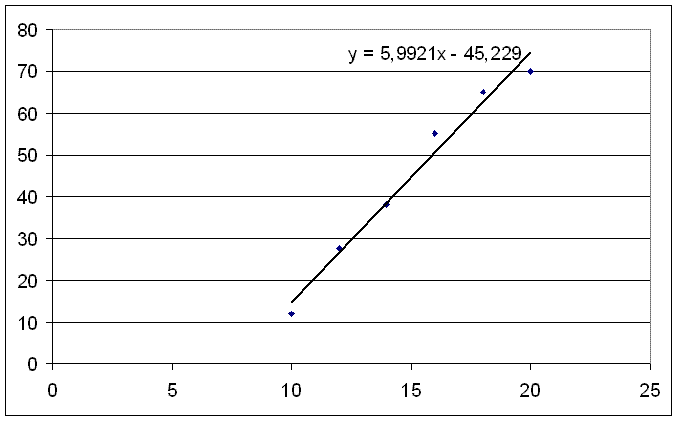 Расположение точек с координатами (xi, yi), i = 1, … , 6 и прямой регрессии указаны на рисунке. |