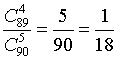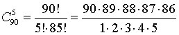Попробуем сосчитать, каково отношение "счастливых" исходов лотереи к общему числу ее исходов при различных способах игры. Общее число исходов лотереи сразу находится по формуле (7). Из мешка с 90 жетонами вынимают 5 жетонов, причем их порядок не играет никакой роли. Получаются сочетания из 90 элементов по 5, число которых равно