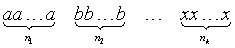 Расстановки описанного типа называются k-размещениями с повторениями из элементов n видов, а число всех таких расстановок обозначают Аnk. Размещения с повторениями подобного типа определяются формулой
