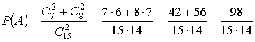 событий, из них благоприятствуют тому, что оба шара белые в количестве m =