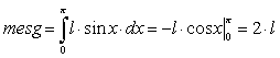 Решение. Выражение «отрезок брошен наудачу» будем понимать так: точка (x, y) наудачу брошена на прямоугольник 0 ≤ x ≤ π, 0 < y ≤ l. Для того, чтобы отрезок пересекал хотя бы одну из прямых семейства, необходимо и достаточно, чтобы y = l, или y ≤ l· sin x. Точки, координаты которых удовлетворяют неравенству y ≤ l·sin x, образуют заштрихованную фигуру. Площадь этой фигуры