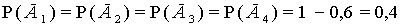 Решение. а) Обозначим через A1, А2, A3, А4, события, состоящие в том, что в течение часа потребуют внимания рабочего соответственно первый, второй, третий, четвертый станки. По теореме умножения вероятностей для независимых событий вероятность того, что в течение часа все станки потребуют внимания рабочего, т. е. произойдут события A1 и A2, A3 и A4, Р (A1 A2 A3 A4) = 0,6 · 0,6 · 0 6 · 0,6 = 0,1296.