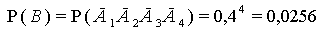 в) Событие, состоящее в том, что в течение часа по крайней мере один из четырех станков потребует внимания рабочего, и событие В, рассмотренное в пункте «б», противоположные. Поэтому вероятность искомого события