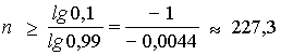 Пример6. Пусть вероятность того, что в магазине очередной будет продана пара мужской обуви 46-го размера, равна 0,01. Сколько нужно продать пар сбуви, чтобы с вероятностью, не меньшей 0,9, ожидать, что среди них будет хотя бы одна пара 46-го размера.