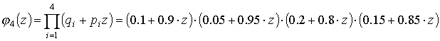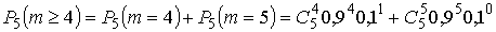 .Р (С) = 1 – Р4(0) – Р4(1) = 1 – 0,000150 – 0,005650 = 0,99420.