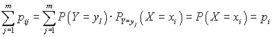 ,pij = Р(Х + Y = хi + yj) = Р(Х = хi и Y = yj) = Р (Х = хi )·РХ = хi(Y = yj) = Р (Y = yj )·РY = yj(X = xi). Далее Здесь использовалась формула полной вероятности, например,