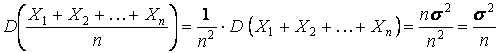 то дисперсия их суммы равна n s2, а средней арифметической s2⁄n.
