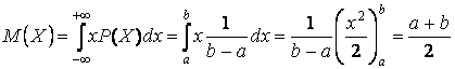 .Математическим ожиданием непрерывной случайной величины X, возможные значения которые принадлежат отрезку [a, b], называют определенный интеграл