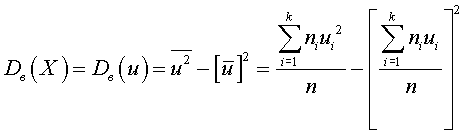 – объем выборки.З а м е ч а н и е 1. Если первоначальные варианты xi большие числа, то для упрощения расчета целесообразно вычесть из каждой варианты одно и то же число С, т. е. перейти к условным вариантам ui = ui − С (в качестве С выгодно принять число, близкое к выборочной средней; поскольку выборочная средняя неизвестна, число С выбирают ''на глаз ''). Тогда