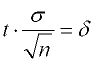 – точность оценки, n – объем выборки, t – знчение аргумента функции Лапласа Ф (t) (приложение 2) при котором Ф (t) = γ/2; при неизвестном σ (и объеме выборки n < 30)