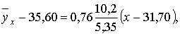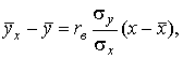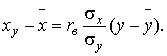 yx условная средняя; x и y - выборочные средние признаков X и Y; σx и σy выборочные средние квадратические отклонения; rв – выборочный коэффициент корреляции, причем